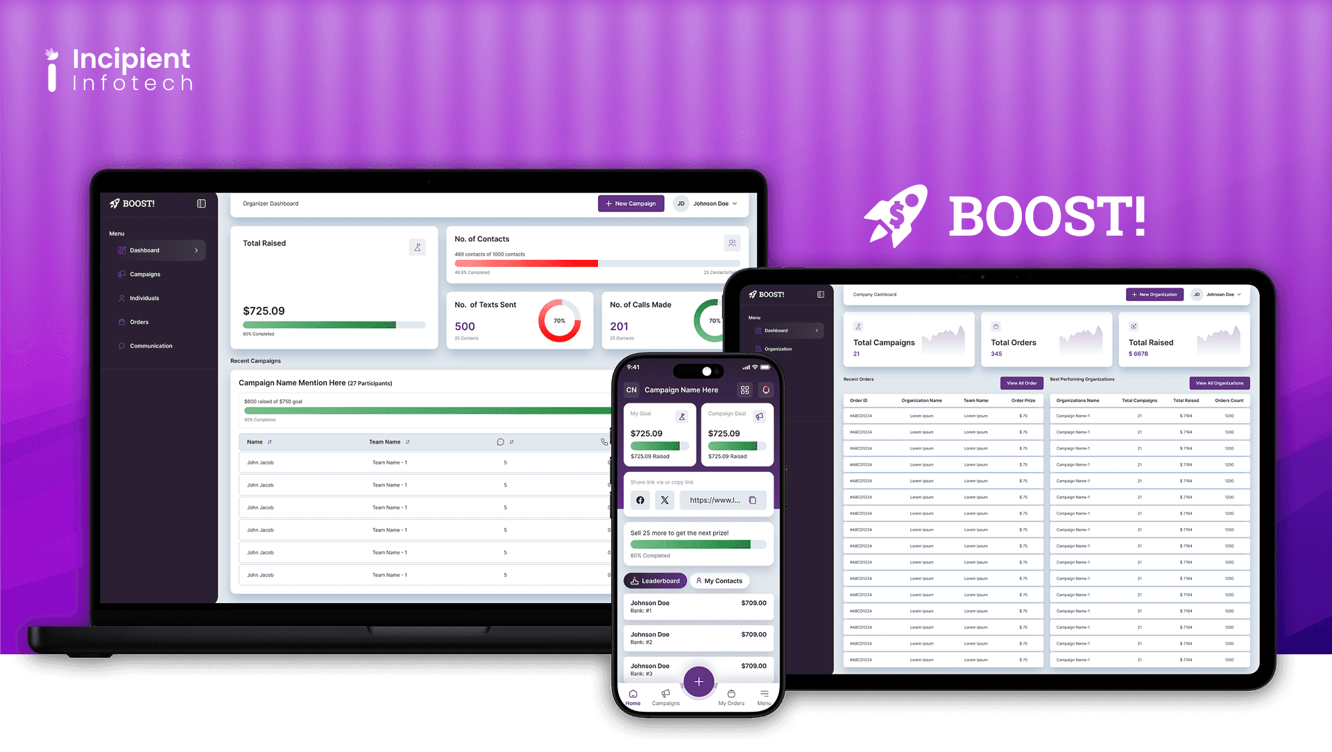 BOOST! is a multi-role fundraising management system designed to streamline campaigns for organizations, sellers, and food companies.