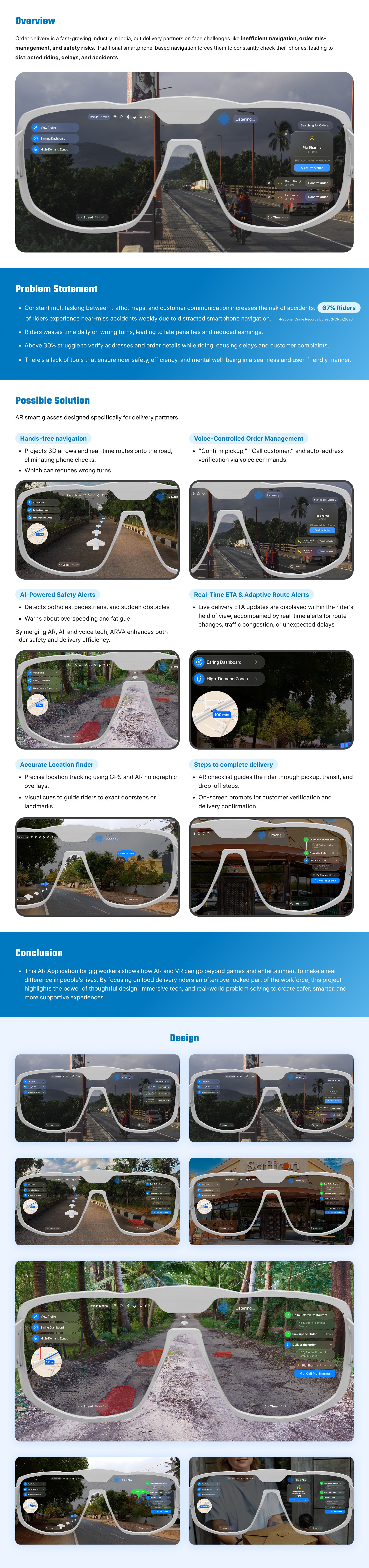Order delivery is a fast-growing industry in India, but delivery partners on face challenges like inefficient navigation, order mis-management, and safety risks. Traditional smartphone-based navigation forces them to constantly check their phones, leading to distracted riding, delays, and accidents.